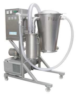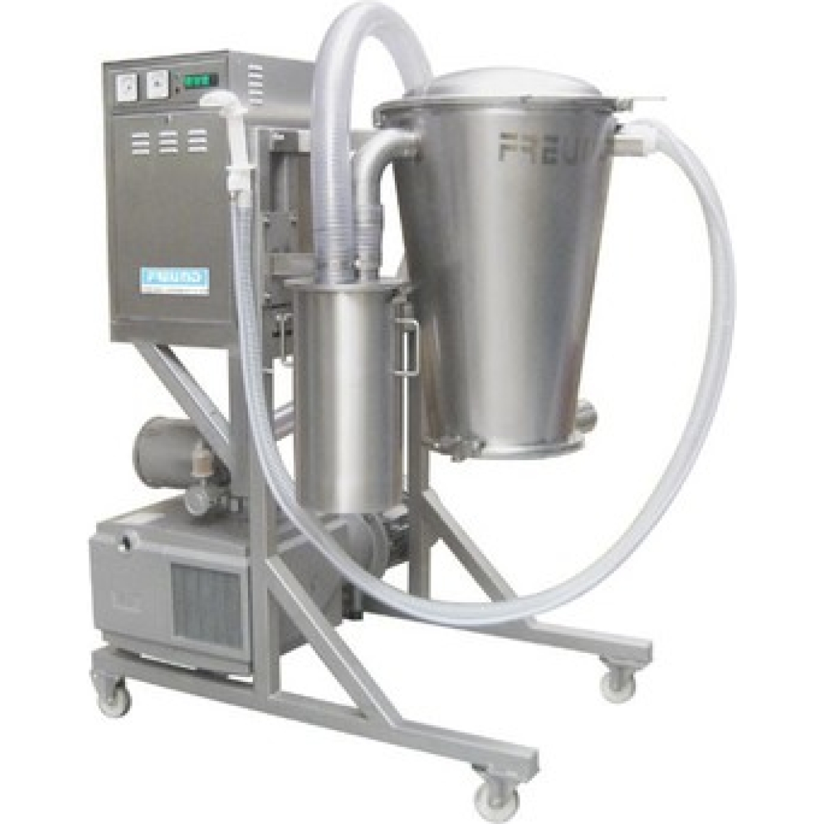 1. Вакуумный резервуар конусообразного вида из высококачественной нержавеющей стали с автооткрыванием нижнего поддона для улавливания отсасываемого материала. Наличие крышки дает возможность открыть резервуар и гарантирует удобство управления, а также простоту мойки.