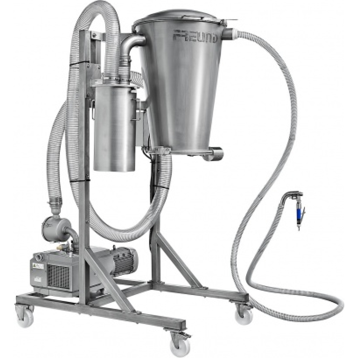 1. Вакуумный резервуар конусообразного вида из нержавеющей стали с автооткрыванием нижнего поддона объемом 110 литров VT 110;