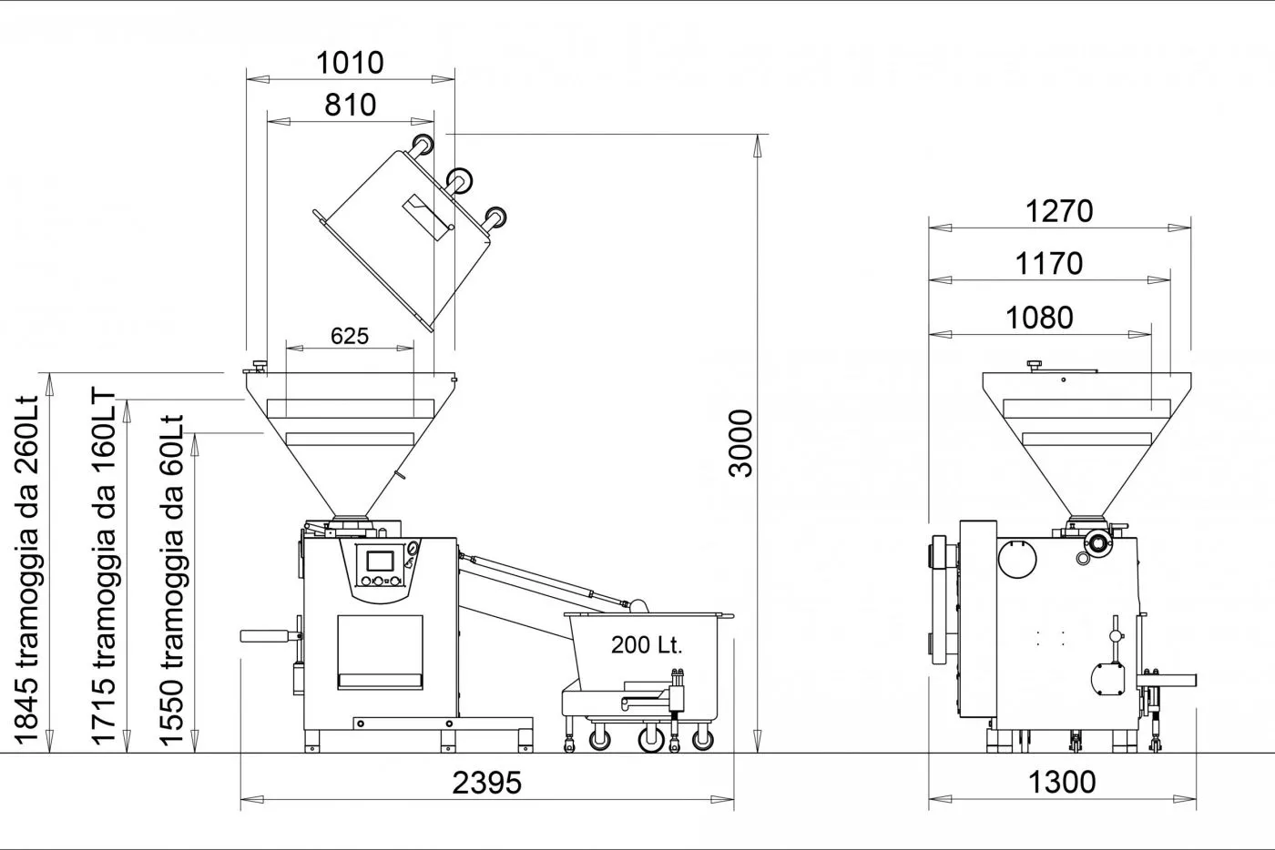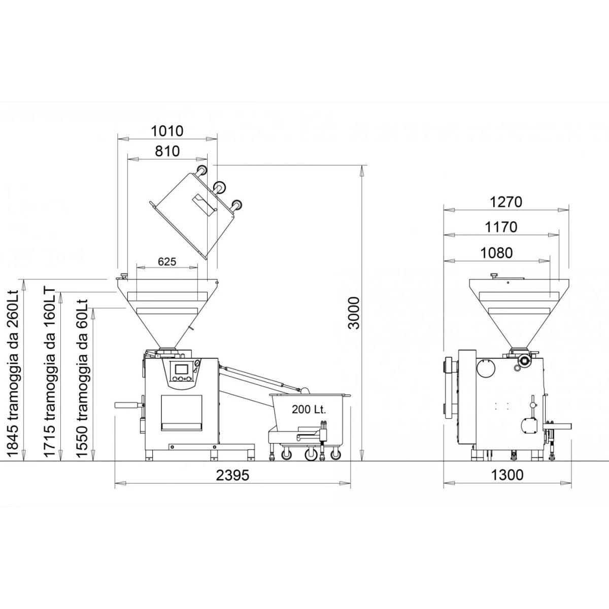 · Возможность установки, даже после покупки, гидравлического подъемника для тележек 90, 120 или 200 л. · Загрузочный бункер 90, 160 или 260 литров. В модели с гидравлическим подъемником установлена откидная самоблокирующаяся подножка для контроля и чистки бункера.