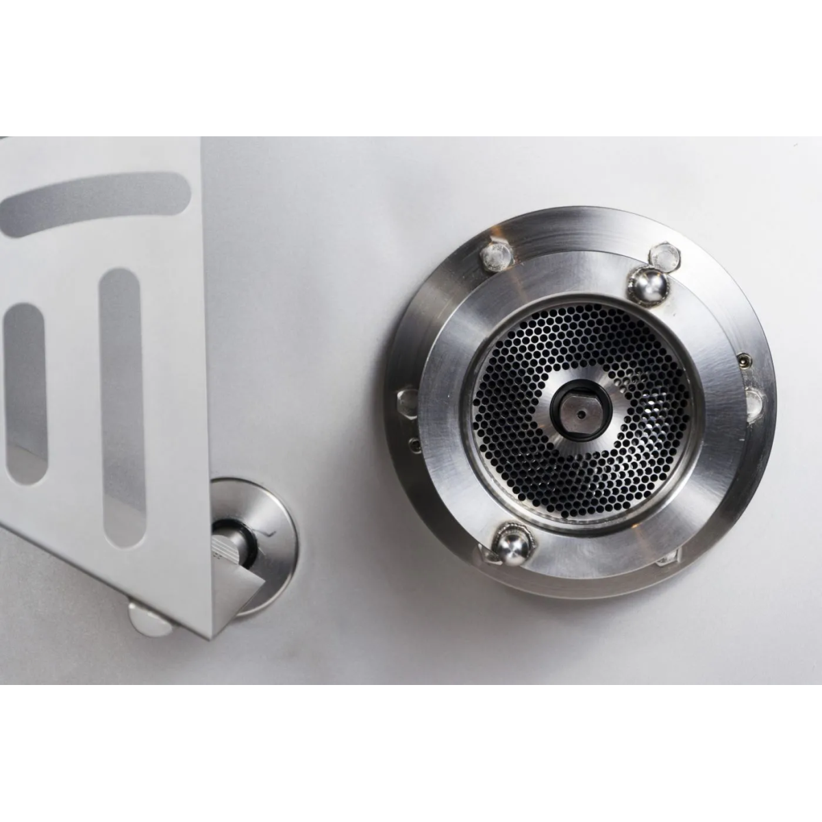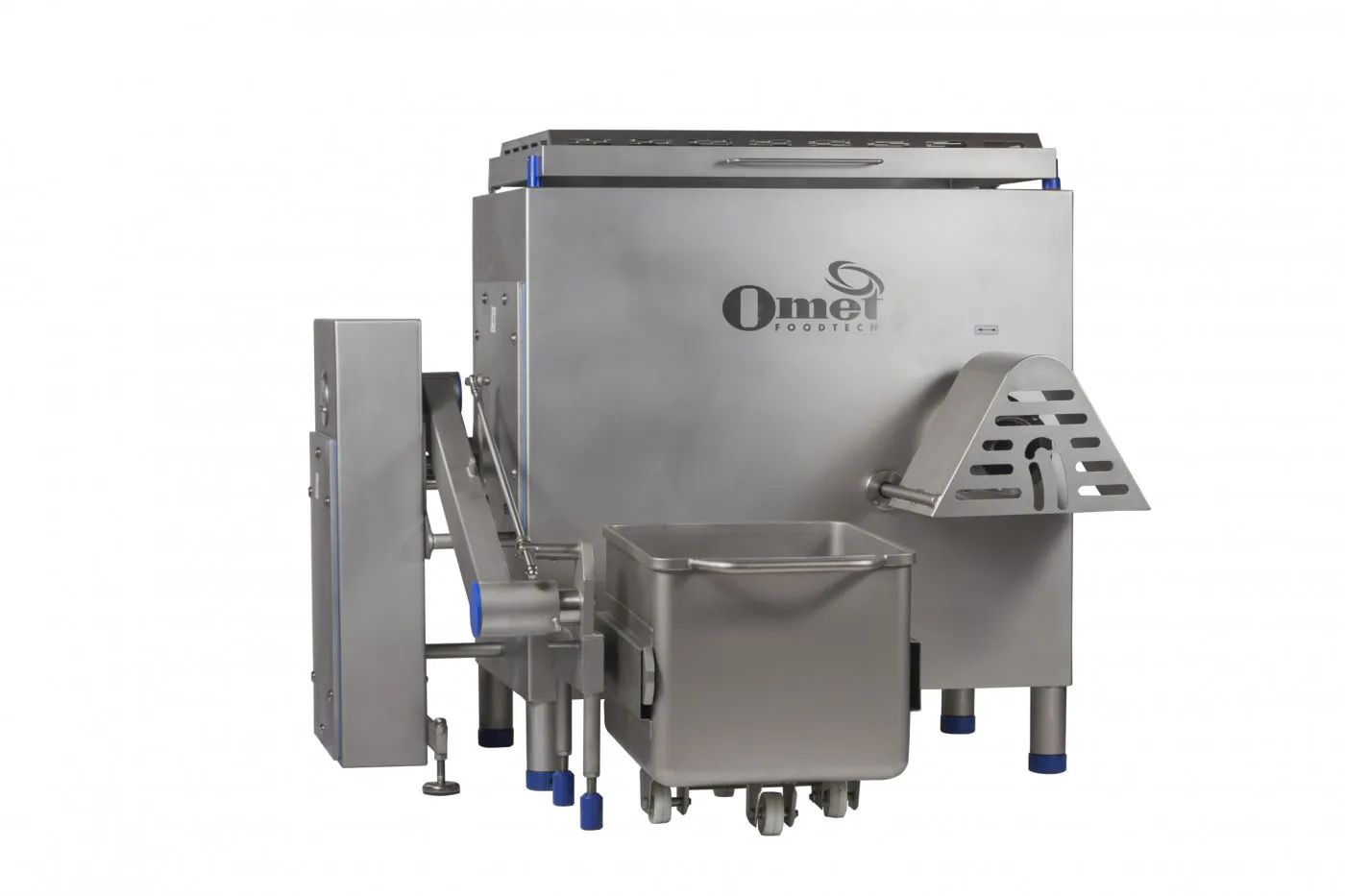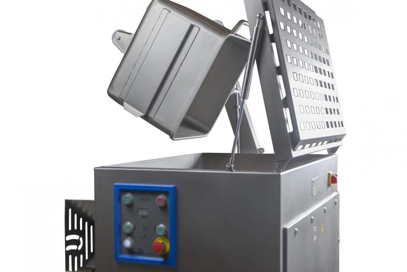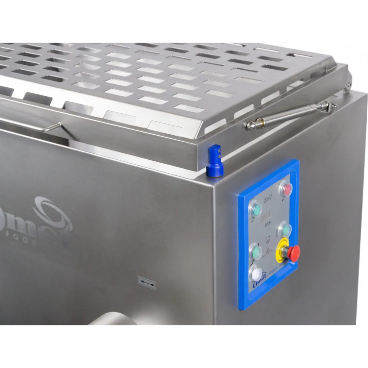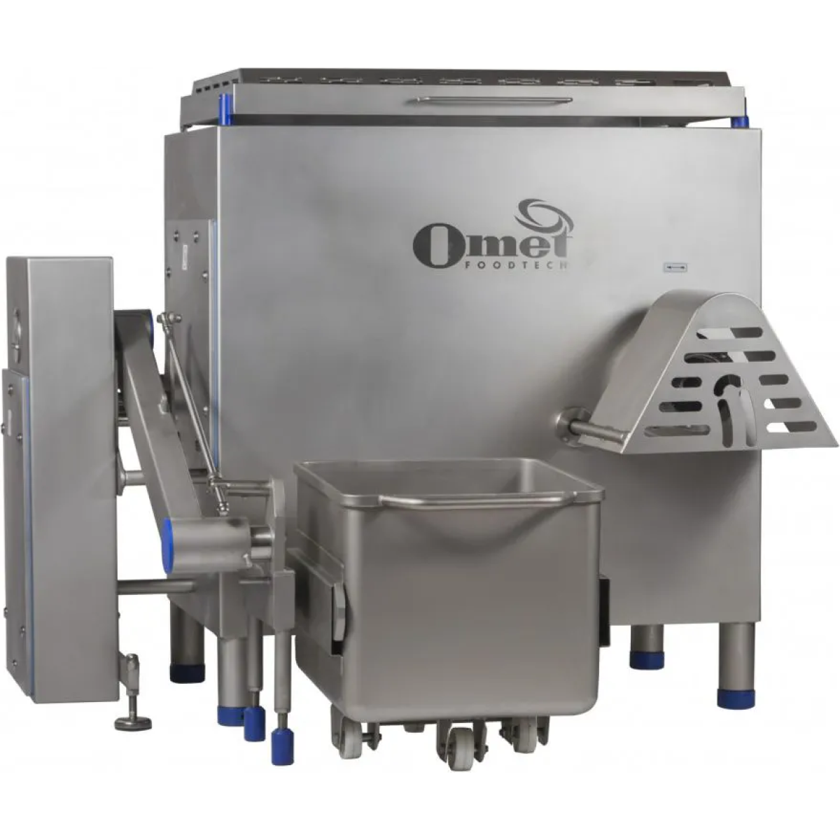 Вместительный бункер, снабженный защитной крышкой, позволяет легко загрузить продукт для перемалывания. Подающий шнек с регулируемой скоростью (опция), установленный под углом к рабочему шнеку, легко снимается для быстрой чистки.