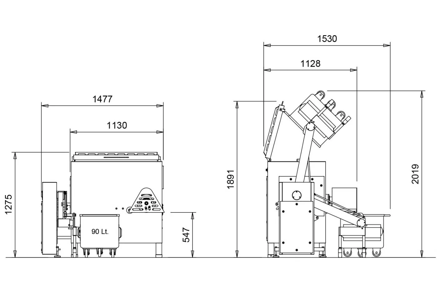 Возможность установки, также после приобретения, гидравлического погрузчика для тележек 90 л.