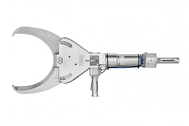 Гидравлические ножницы для отделения шейной части свиней. Защитное двуручное включение.