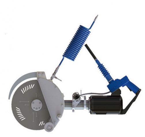 Клапан для подачи воды, встроенный электронный тормоз двигателя, ролики для удобства распиловки.