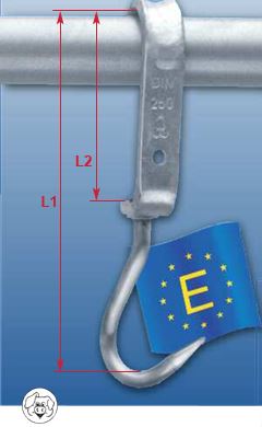 Скользящая подвеска из полосового металла 35 x 12 мм, горячеоцинкованного. Крюк для подвески мяса из нержавеющей стали, Ø 16 мм, головка крюка изготовлена методом горячей ковки.