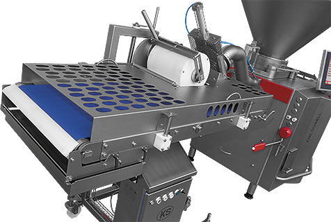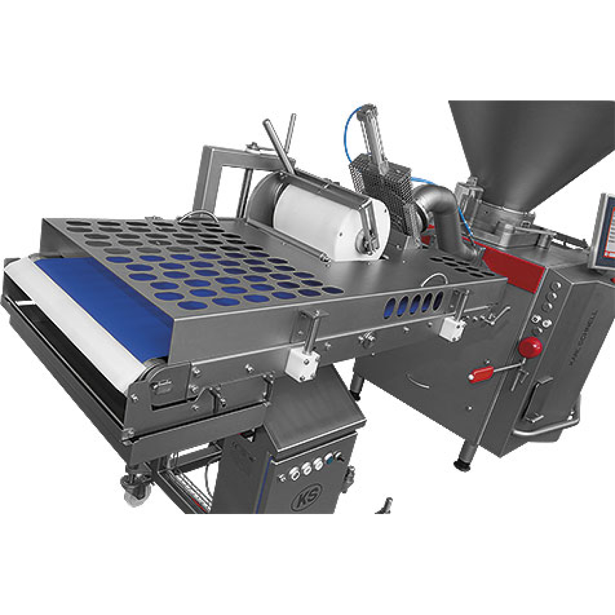 Предлагается обширный выбор приставных машин KS: перекручиватель оболочки, держатель оболочки, надеватель оболочки, тройная головка, двойной выпуск, головка для многократного порционирования, 4-кратная станция, головка для лапши, волчковые головки и др. В сочетании с приставными аппаратами область применения шприцов KS существенно расширяется.