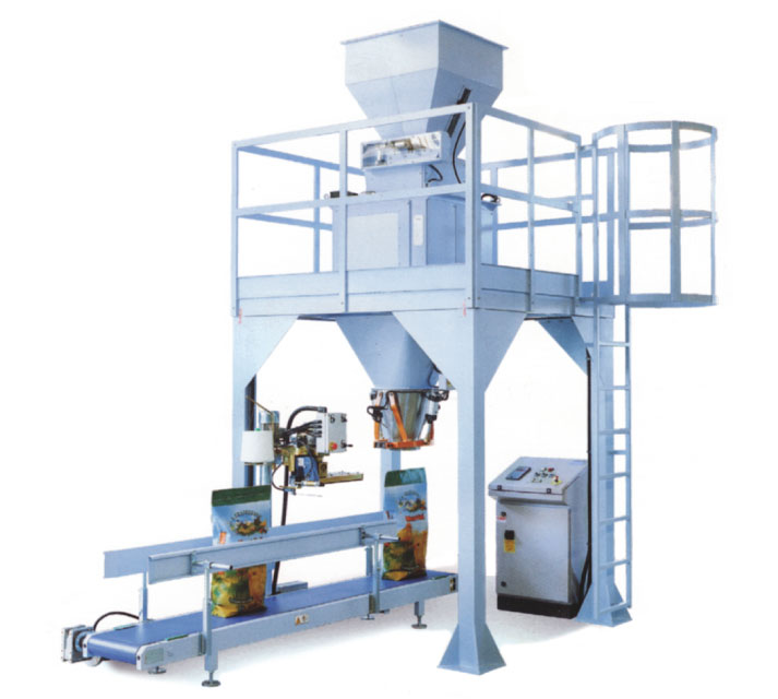 • ПОЛУАВТОМАТИЧЕСКАЯ ВЕСОВАЯ ДОЗИРОВКА, НАПОЛНЕНИЕ И ЗАШИВКА МЕШКОВ С ОТКРЫТОЙ ГОРЛОВИНОЙ ВЕСОМ ОТ 5 ДО 50 КГ.