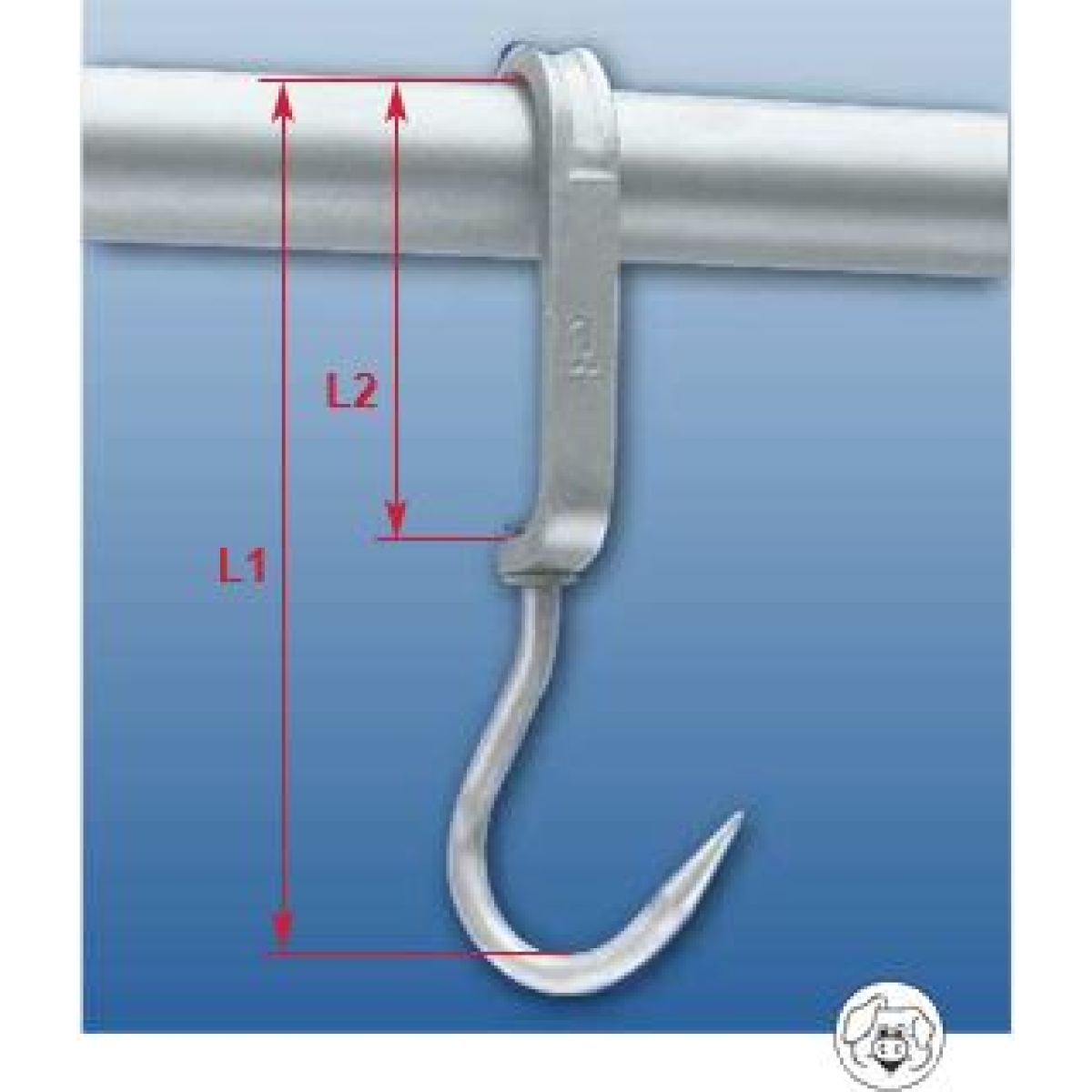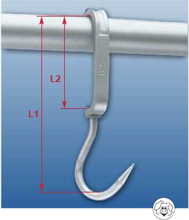 Скользящая подвеска из полосового металла 25 x 12 мм, горячеоцинкованного. Крюк для подвески мяса из нержавеющей стали.