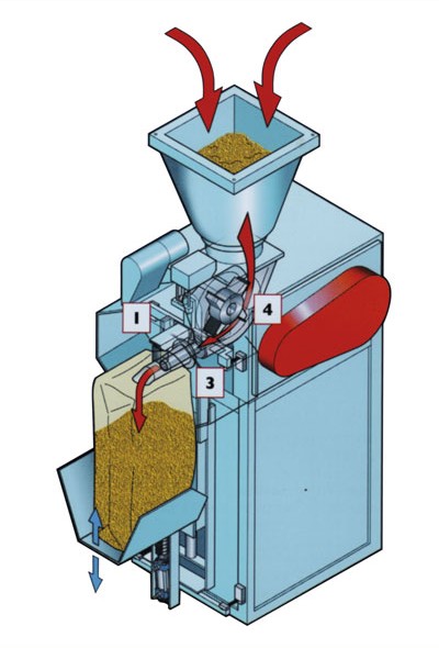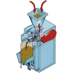 Весовой дозатор — мешконаполнитель с турбинной подачей дозы от 5 до 50 кг, специально предназначенный для цемента, извести и очень текучих продуктов. ОДИНАРНЫЙ: 350 — 400 мешков в час