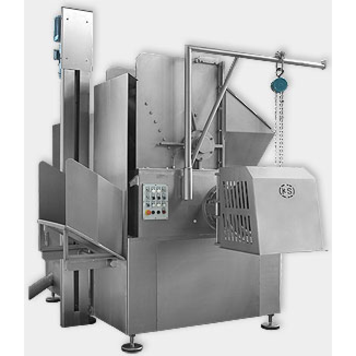 Комбинированный волчок KS400 KS Тип 445 рассчитан особенно на переработку больших объёмов продукции, при этом специальный режущий механизм KS предотвращает механическое давление на мясо, возникающее в традиционных волчках.