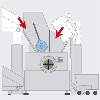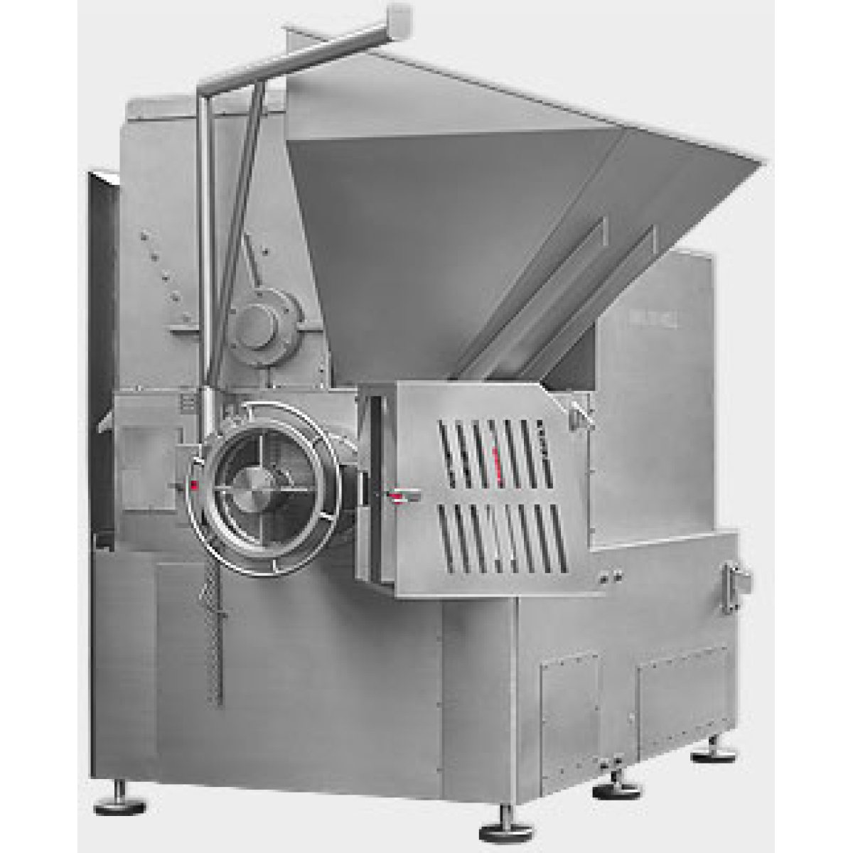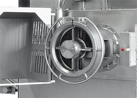Благодаря отдельному приводу для подающего шнека и измельчающих ножей, вращающихся в противоположных направлениях и имеющих две частоты вращения, степень измельчение можно регулировать при одной и той же решетке волчка.