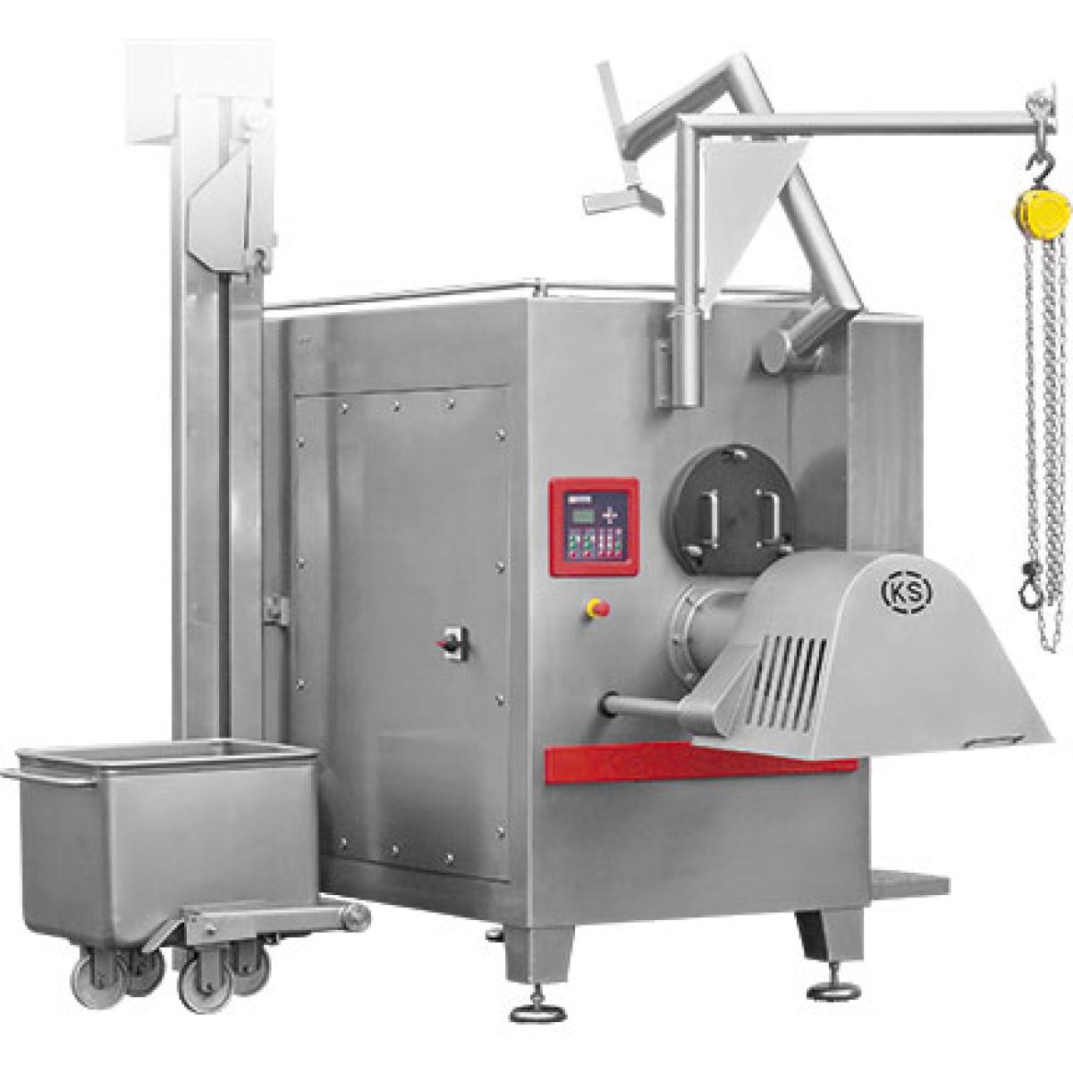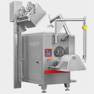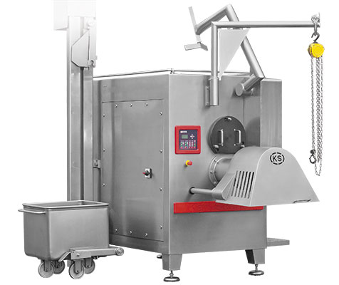 Автоматический волчок KS AG-V250/K280 типа 470 сочетает рациональную переработку с превосходной производительностью. Подходит как для замороженных, так и для свежих продуктов, напр., мяса, овощей и сыра.