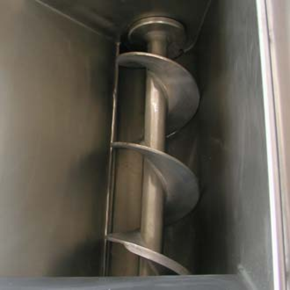Подающий шнек расположен над главным шнеком.